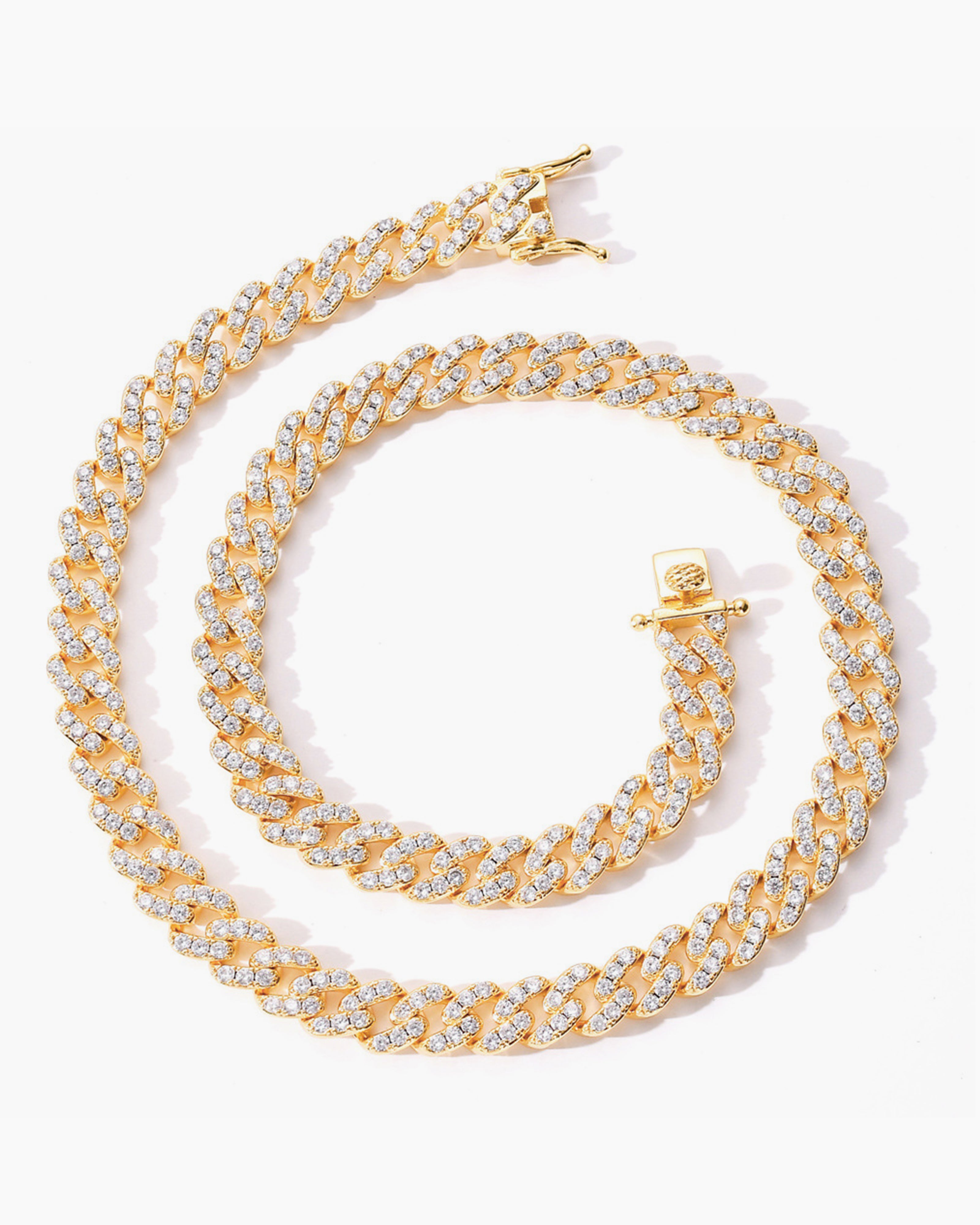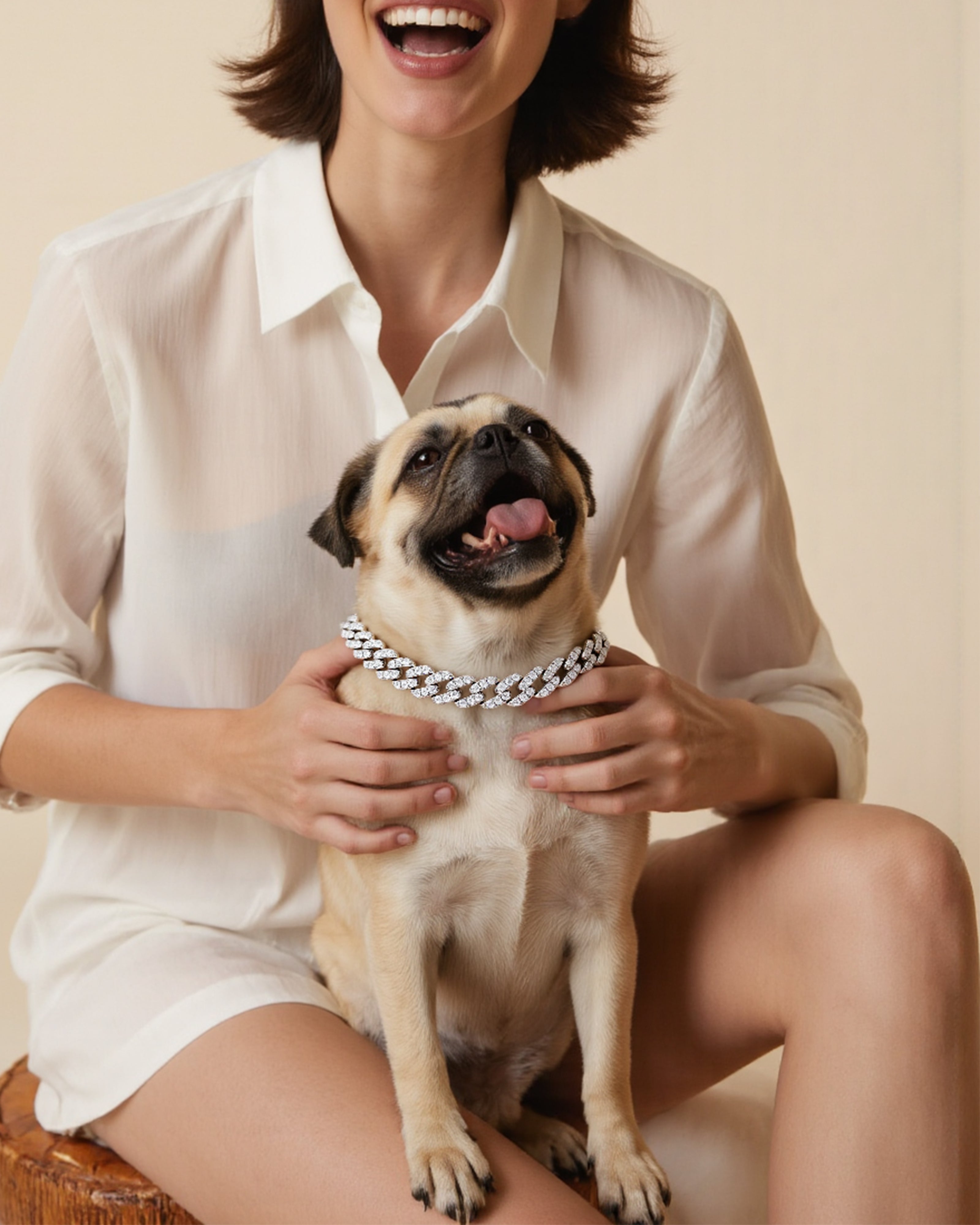 Inspired by geometric structures, this Cuban link dog collar features interlaced chain links resembling rhombus patterns, creating rhythm and harmony. Diamond inlays add sparkle, elevating the dog collar into a stylish piece of fashion accessories.