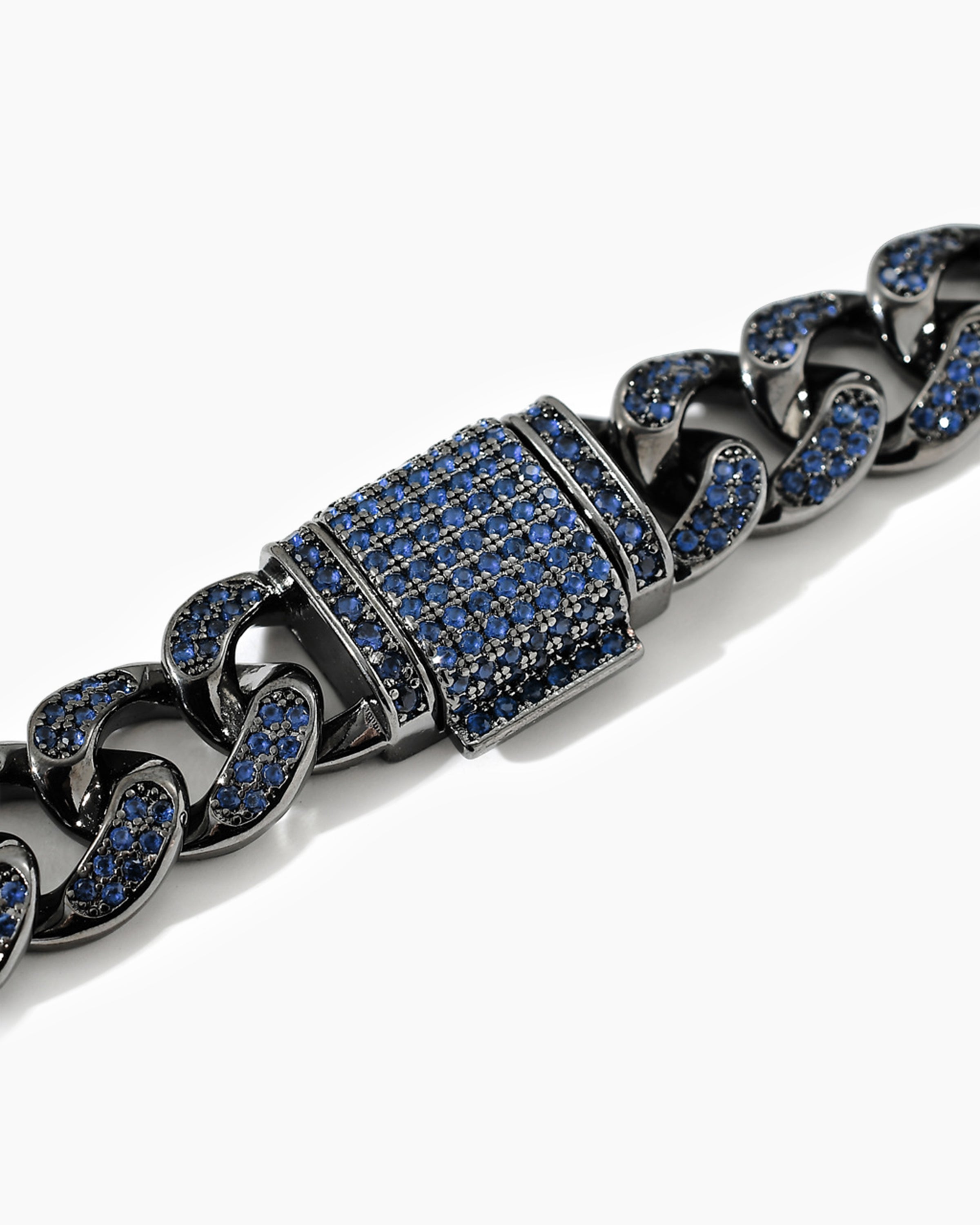The dark metal links, reminiscent of a Cuban link dog collar, symbolize unwavering loyalty 🐾, while the pavé blue stones sparkle like stars ✨ scattered across the midnight sky—subtle yet eternally radiant.