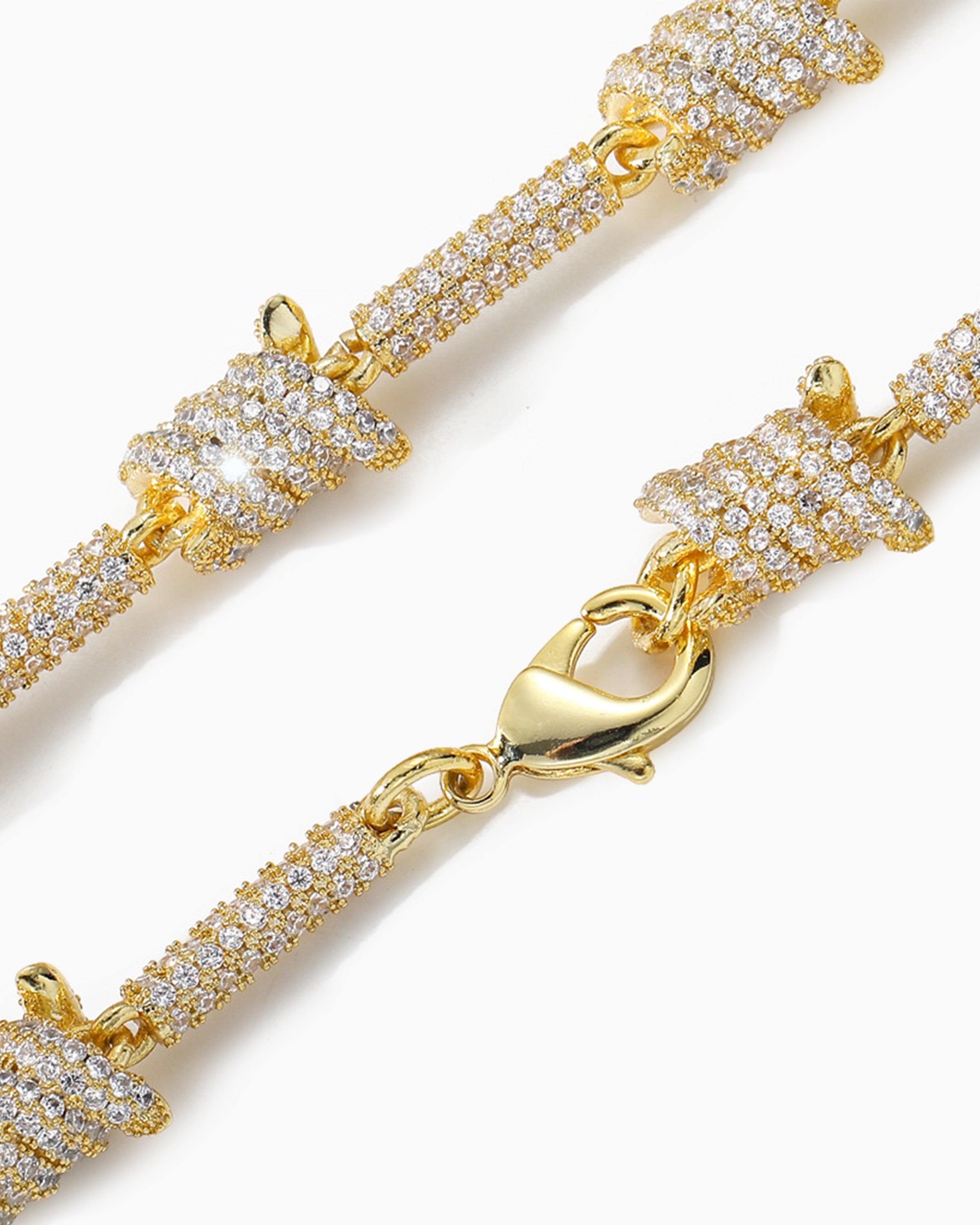 This human-pet matching necklace features a structured design symbolizing warmth and protection. Its layered pavé links sparkle like a trail of shooting stars 🌠, with each linked “knot” representing the countless moments of connection and companionship between you and your pet 🐾. Wherever you go, this chain is a silent bond—a meaningful link that speaks for itself.